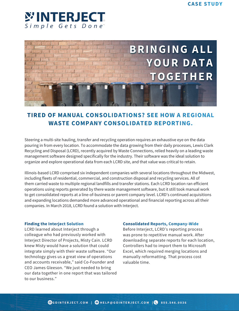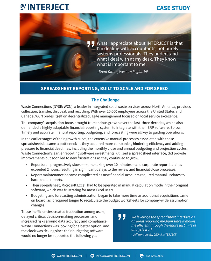 This multi-focus, regional waste company streamlined operations and financial reports with INTERJECT. Learn how they: