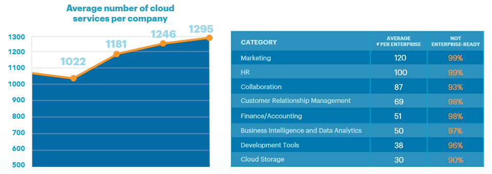 Between marketing tools, collaboration software, and HR services – just to name the top three most used services – the average company is already totaling 300 applications. Then there’s DNS, hosting, email, security, microservices. These things generate “off-grid” data – Dark Data – that can make up nearly 90% of a company’s overall data collection. Surprise: it’s growing by over 50% year over year.